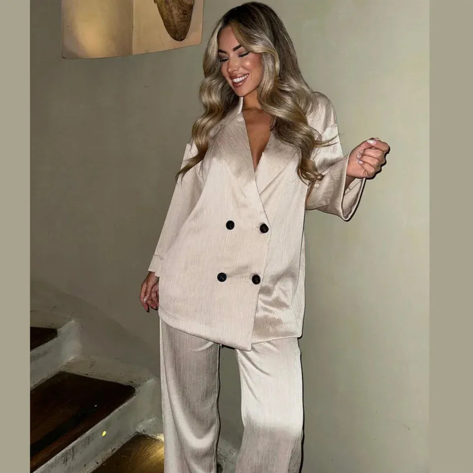 This jacket and pants set by REDPASSION™ in synthetic fiber combines contemporary elegance and unparalleled comfort, offering a flawlessly tailored silhouette. The smooth and lightweight texture enhances every movement, making this piece an essential choice for both professional and casual occasions.