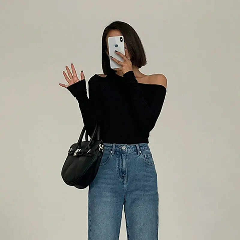 Este suéter de REDPASSION™ juega con los cortes para un efecto a la vez moderno y audaz. Su hombro descubierto aporta un toque elegante, mientras que su corte ajustado realza la silueta. Ideal para un look moderno y sofisticado.